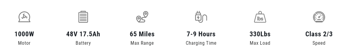 Boasting 1000W continuous power (1300W Max Output) and 82Nm of torque, ARCHON's high-speed brushless geared hub motor lets you easily take on even the roughest terrains. Plus, its 48V 17.5Ah Lithium-ion removable battery offers long life and great performance, providing up to 65 miles per charge on pedal-assist mode and an impressive 33 miles on electric-only mode. Also included is a one-year warranty on the original battery. On top of that, a backlight display and total programmability, plus a mechanical pedaling system, provide for full speed and safety settings customization.